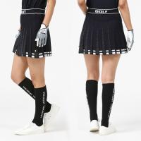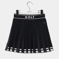 軽量なポリエステル素材を使用したジャガードニットスカートです。プリーツの奥ひだがメッシュの編地になった涼しい見え感のプリーツスカートです。ウエスト部分にブランドロゴとGOLFのロゴが入っていてトップスをインしてもかわいいデザインです。ウエスト調節できるスピンドル付きです。