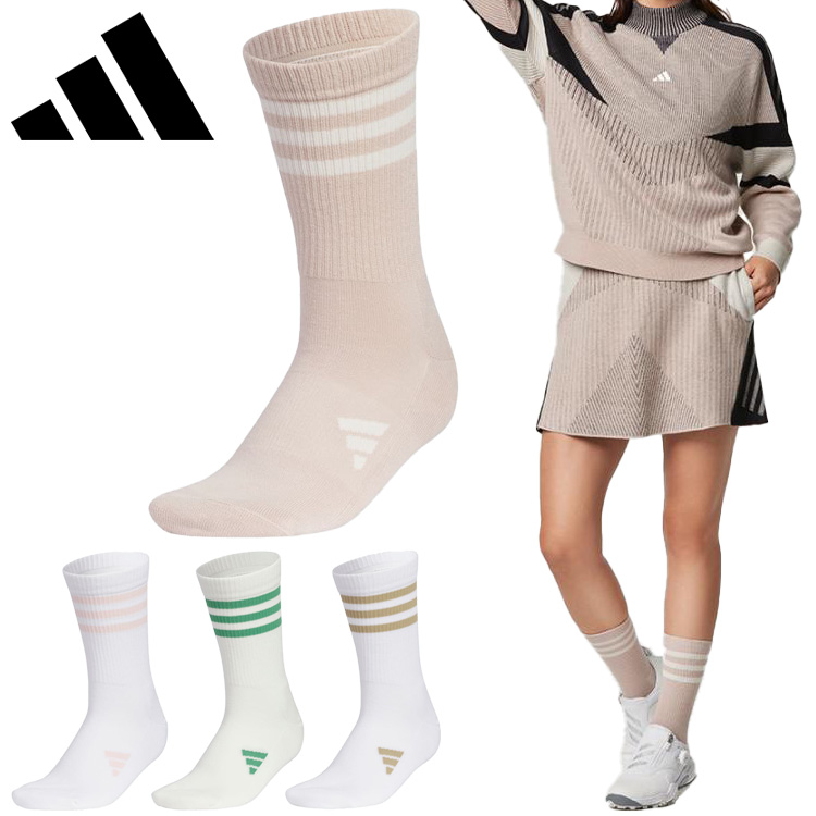 【メール便対応】アディダスゴルフ クルー丈 スリーストライプ クッションソックス レディース 靴下 MGR52