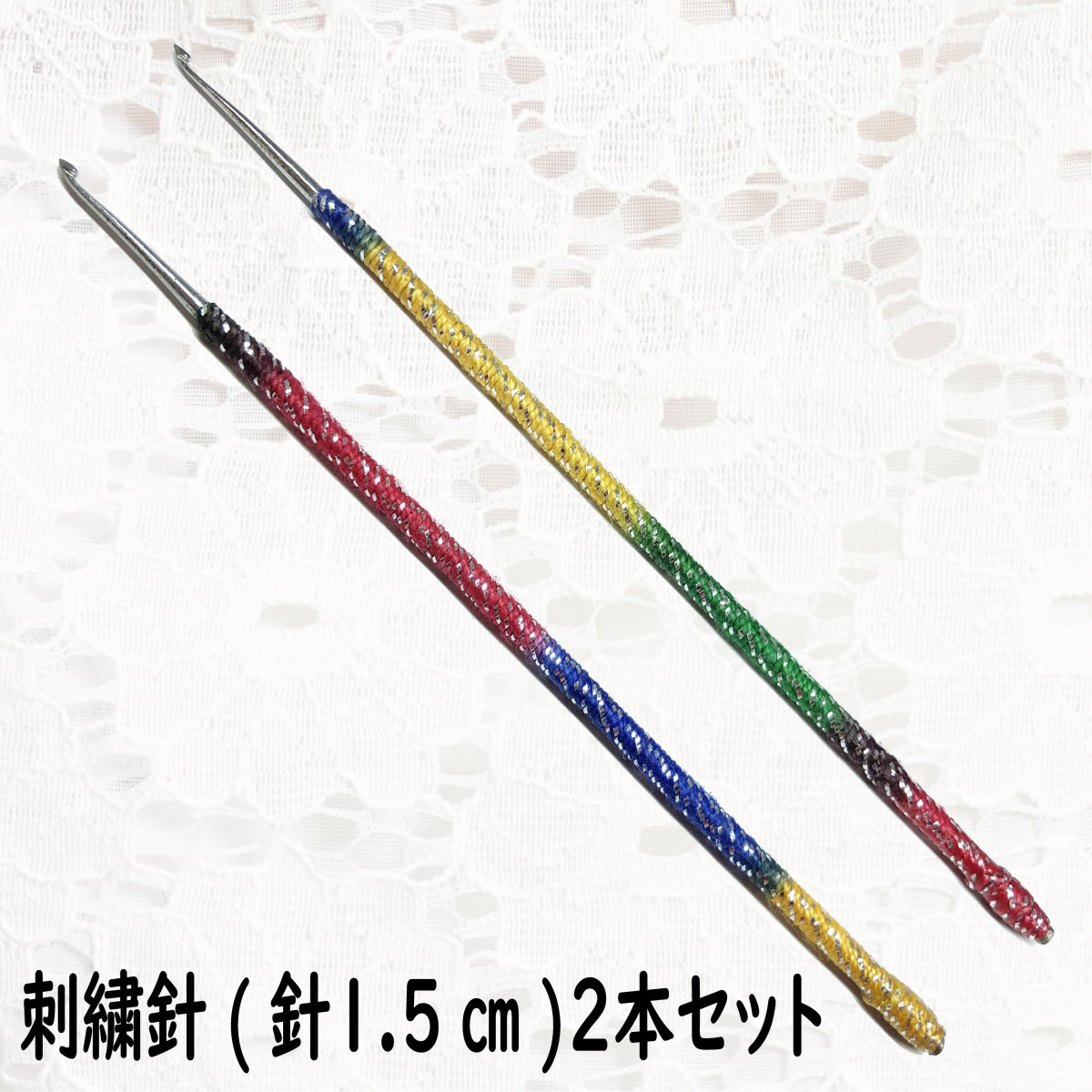 アリワーク 刺繍針 2本セット 針サイズ1.5cm レインボー柄 オートクチュール かぎ針 刺しゅう ビーズ刺繍用ニードル 手芸 用品 用具 ハリ