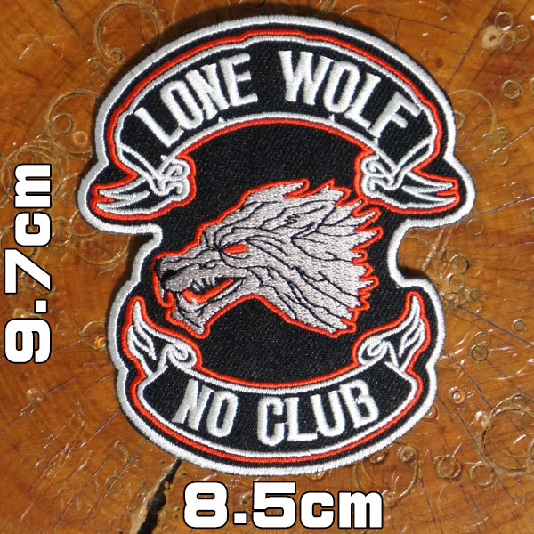 バイカー刺繍アイロンワッペン パッチ【ローンウルフ ノークラブ】一匹狼 クラブには属さない バイカー チーム バイク 革ジャン アイロン 糊付き