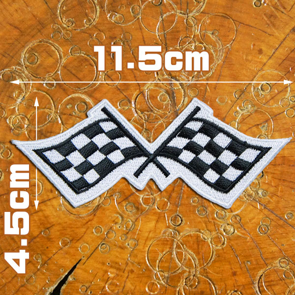 刺繍 アイロンワッペン【チェッカーフラッグ】横長 4.5cmx11.5cm アイロン 糊付き 白黒 ワッペン レース ゴールフラッグ 旗 バイク 車 F1