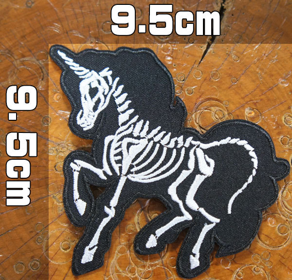 刺繍アイロンワッペン アップリケ パッチ【ユニコーン スカル】黒 神話 伝説 馬 アニマル エンブレム ドクロ ホース DIY 糊付き 手芸