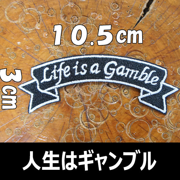 刺繍 アイロン ワッペン【Life is a Gamble/人生はギャンブル】黒 スラング 英語 単語 俗語 言葉 パッチ パッチ アップリケ アメカジ