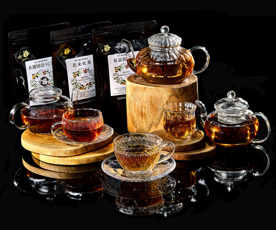 化学物質等に異常に反応する嗅覚・味覚が超鋭敏の方々や、有機のお茶さえ飲めない多くの方々のために、有機認証農薬も農薬と名の付くものは一切使用せず、植物が持っている耐性力等、植物本来の生命力を信じ、自然栽培されたものが今回「GACKT極シリーズ」に加わった『屋久島 自然栽培茶』である。