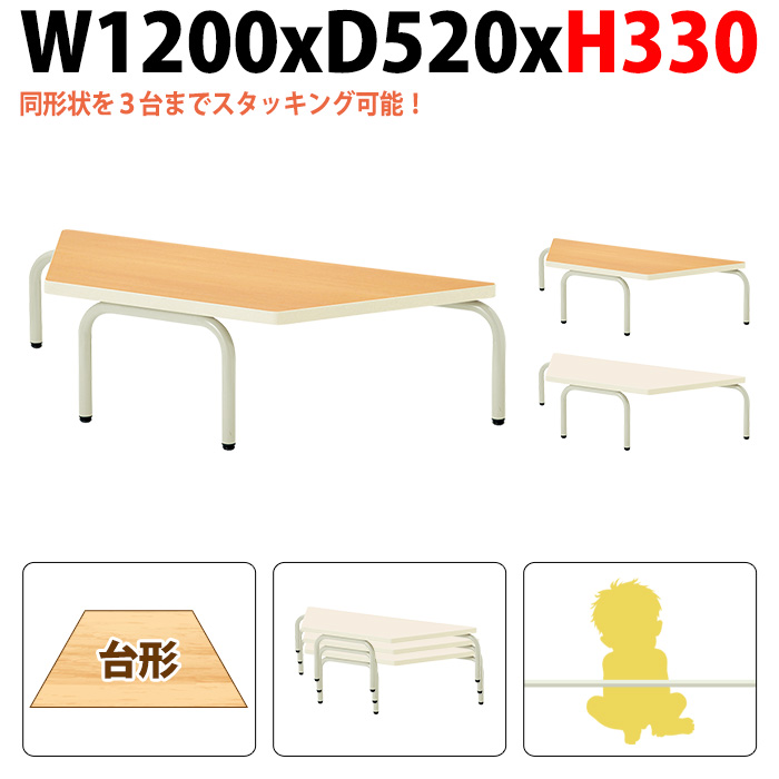 | 特徴 | 高さが330mmなので、床に座って座卓として使用できます。リラックスできるだけでなく、椅子からの転倒リスクがないので、安心してお使いいただけます。 こちらは柔軟なレイアウトが可能な台形型天板です。複数のテーブルを組み合わせることで、対面式やグループ活動に適した配置など、自由に配置を変えることができます。幼稚園・保育園・児童施設・子供塾・子供教室などの子供用テーブルにおすすめです。 |