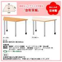 | 特徴 | 高さが640mmなので、椅子に座って使用するのに最適です。子供達が快適に使える高さの椅子と組合わせてご使用ください。 こちらは柔軟なレイアウトが可能な台形型天板です。複数のテーブルを組み合わせることで、六角形や三角形など、自由に配置を変えることができます。 幼稚園・保育園・児童施設・子供塾・子供教室などの子供用テーブルにおすすめです。 |