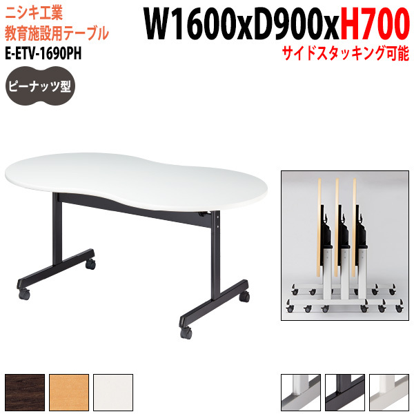 学習塾用テーブル E-ETV-1690PH 幅160x奥行90x高さ70cm ピーナッツ型 学習机 生徒机 セミナーテーブル 研修デスク 塾用机 研修机