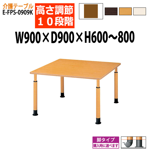 介護テーブル デイサービス 福祉施設 高さ調整 10段階 E-FPS-0909K 幅90x奥行90x高さ60〜80cm 角型 老人ホーム 介護用テーブル