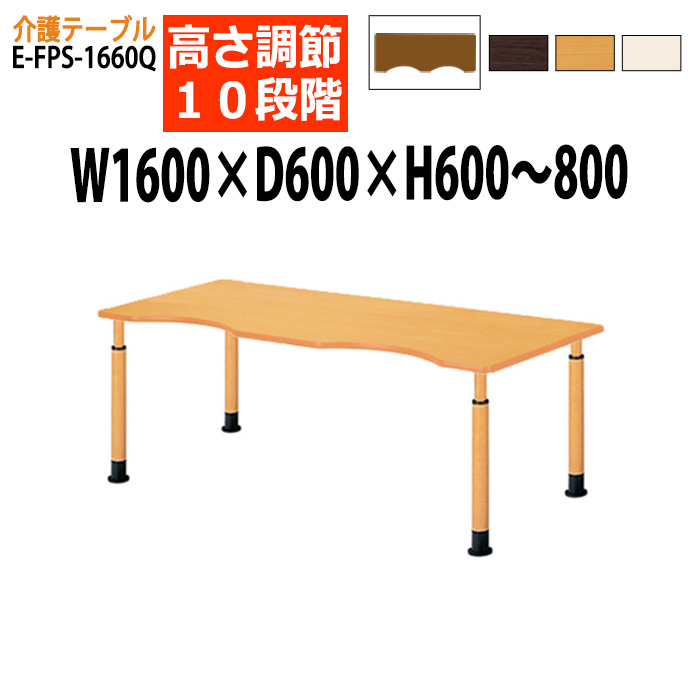 介護テーブル デイサービス 福祉施設 高さ調整 10段階 E-FPS-1660Q 幅160x奥行60x高さ60〜80cm 波型 老人ホーム 介護用テーブル