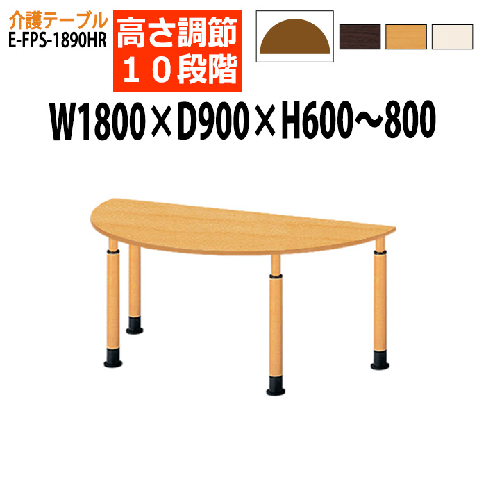 介護テーブル デイサービス 福祉施設 高さ調整 10段階 E-FPS-1890HR 幅180x奥行90x高さ60〜80cm 半円型 老人ホーム 介護用テーブル