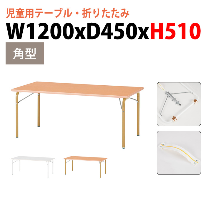 保育園 テーブル 幼稚園 机 折りたたみ JRK-1245H 幅120x奥行45x高さ51cm 角型 子供用テーブル キッズテーブル 学童 塾 長机 国産 日本製