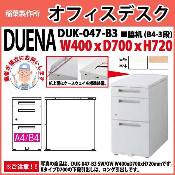 サイドデスク 組立設置サービス付 B4-3段タイプ DUK-047-B3 W40×D70×H72cm 脇机 収納 会社 事務所 オフィス 工場 施設