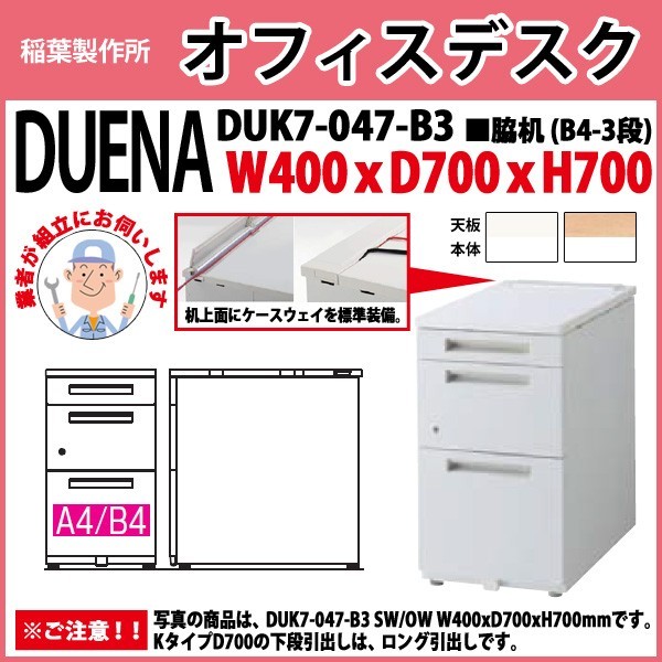 サイドデスク 組立設置サービス付 B4-3段タイプ DUK7-047-B3 W40×D70×H70cm 脇机 収納 会社 事務所 オフィス 工場 施設