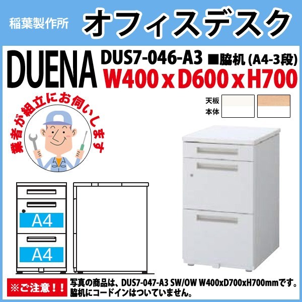サイドデスク 組立設置サービス付 A4-3段タイプ DUS7-046-A3 W40×D60×H70cm 脇机 収納 会社 事務所 オフィス 工場 施設