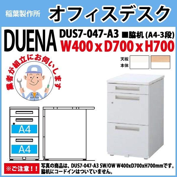 サイドデスク 組立設置サービス付 A4-3段タイプ DUS7-047-A3 W40×D70×H70cm 脇机 収納 会社 事務所 オフィス 工場 施設