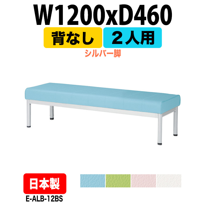 ロビーチェア 1200 病院 待合室 椅子 病院待合椅子 長椅子 背なし 2人掛け E-ALB-12BS シルバー脚 W1200×D460×SH385mm 医療施設 薬局 医院 待合