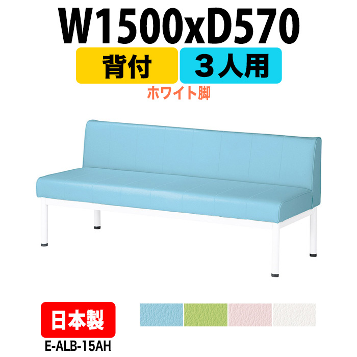 ロビーチェア 1500 病院 待合室 椅子 病院待合椅子 長椅子 背付 3人掛け ホワイト脚 E-ALB-15AH W1500×D570×H630 SH385mm 医療施設 薬局 医院 待合
