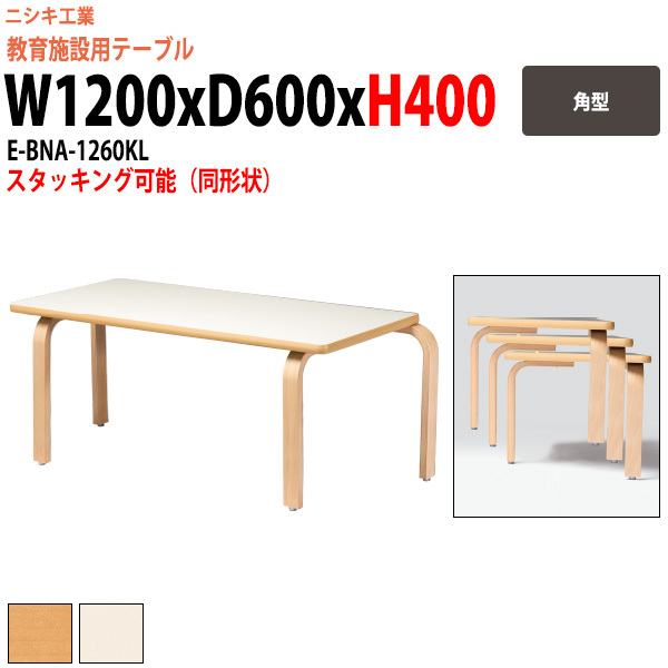 保育園 テーブル 幼稚園 机 E-BNA-1260KL 幅1200x奥行600x高さ400mm 角型 キッズテーブル 子供用テーブル 長机 学童保育 塾 放課後デイサービス 学童保育 塾