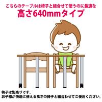 | 特徴 | 高さが640mmなので、椅子に座って使用するのに最適です。子供達が快適に使える高さの椅子と組合わせてご使用ください。 こちらは柔軟なレイアウトが可能な台形型天板です。複数のテーブルを組み合わせることで、六角形や三角形など、自由に配置を変えることができます。 幼稚園・保育園・児童施設・子供塾・子供教室などの子供用テーブルにおすすめです。 |