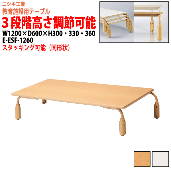 保育園 テーブル 幼稚園 机 高さ調節 E-ESF-1260 幅1200x奥行600x高さ300・330・360mm 角型 キッズテーブル 子供用テーブル 長机 学童保育 塾 学童保育 塾