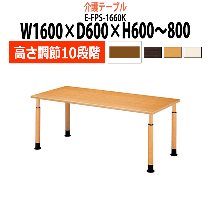 介護用テーブル 高さ調整 介護施設 テーブル 10段階 E-FPS-1660K 幅1600x奥行600x高さ600〜800mm 角型 福祉施設用テーブル 老人ホーム デイサービス