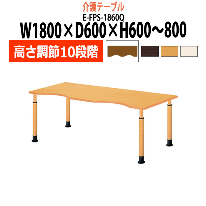 介護用テーブル 高さ調整 介護施設 テーブル 10段階 E-FPS-1860Q 幅1800x奥行600x高さ600〜800mm 波型 福祉施設用テーブル 老人ホーム デイサービス