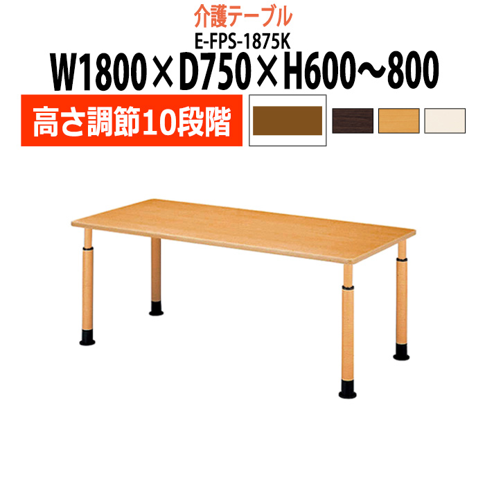 介護用テーブル 高さ調整 介護施設 テーブル 10段階 E-FPS-1875K 幅1800x奥行750x高さ600〜800mm 角型 福祉施設用テーブル 老人ホーム デイサービス