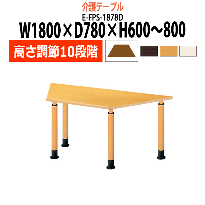 介護用テーブル 高さ調整 介護施設 テーブル 10段階 E-FPS-1878D 幅1800x奥行780x高さ600〜800mm 台形型 福祉施設用テーブル 老人ホーム デイサービス