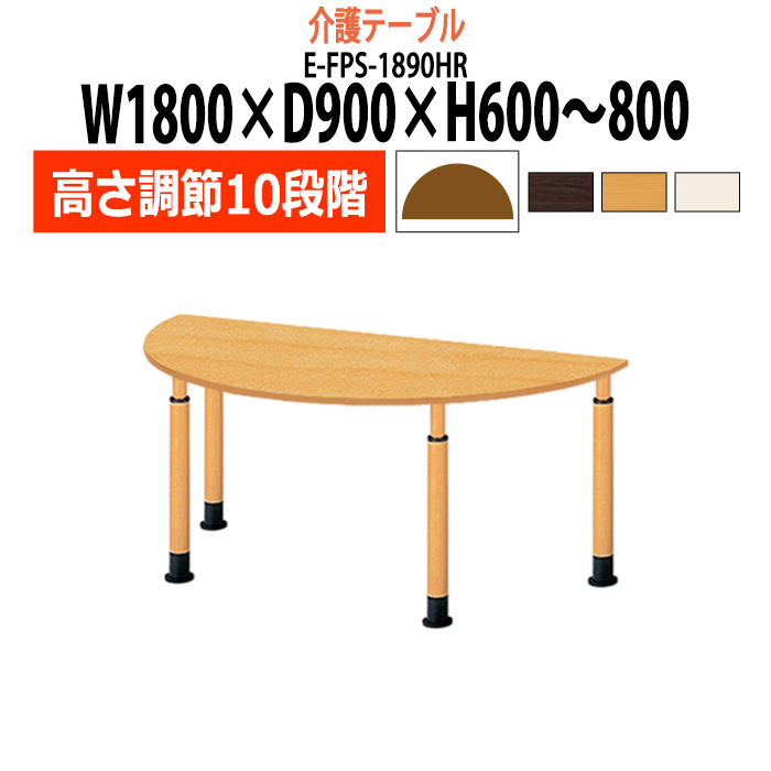 介護用テーブル 高さ調整 介護施設 テーブル 10段階 E-FPS-1890HR 幅1800x奥行900x高さ600〜800mm 半円型 福祉施設用テーブル 老人ホーム デイサービス