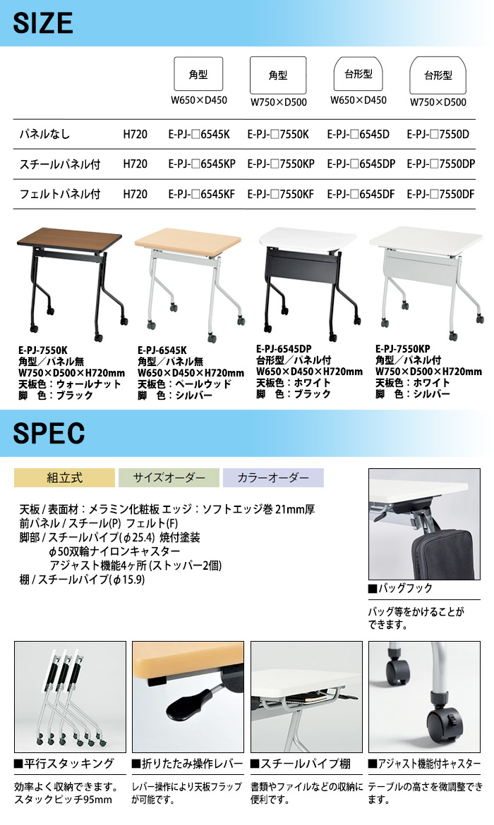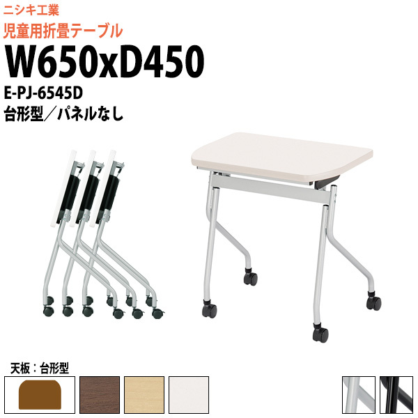 学習塾用テーブル 折りたたみ キャスター付 E-PJ-6545D 幅650x奥行450x高さ720mm 台形型 パネルなし 学習机 塾 セミナーテーブル 学習塾