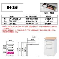 昇降ワゴン B4-3段タイプ (搬入設置に業者がお伺いします) W395xD585xH642.5?722mm 脇机 サイドワゴン オフィスワゴン オフィスデスク用