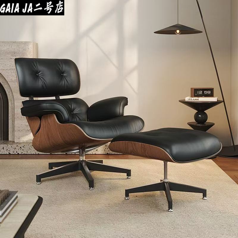 【最高の贅沢チェア】インテリアブランドのラウンジチェア、脚を伸ばせるオットマンとセットです。