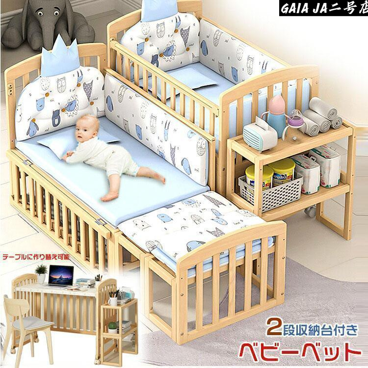 2026 ベビー ベッド 木製 高さ調節 ベビー用品 新生児 赤ちゃん キャスター付 2段収納台付き 出産祝い 添い寝 ゆりかご 子供用 タイプ 天然