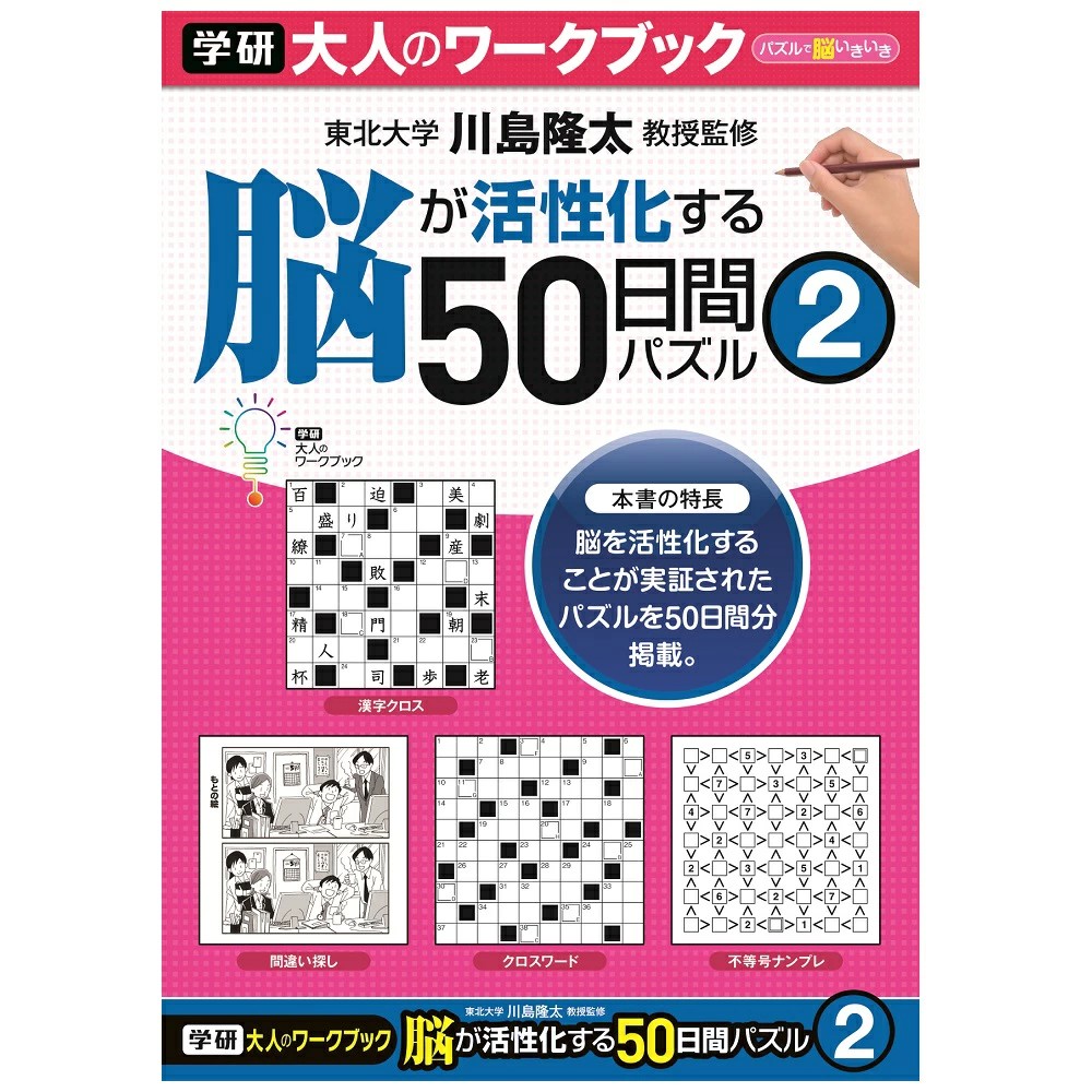 脳を活性化するパズルを50日間分掲載した大人のためのワークブックです。
