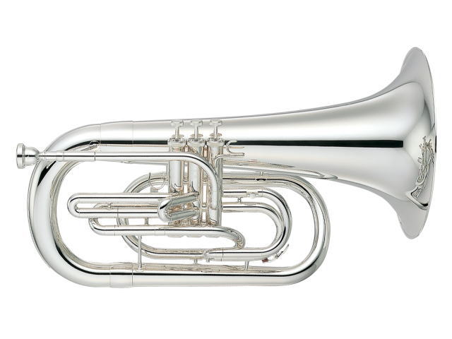 B♭管。バルブシステムは3ピストン。ベルはイエローブラス直径300mm、ボアサイズは14.5mm、銀メッキ仕上げ。