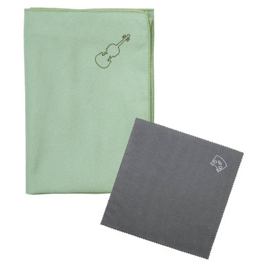 楽器本体用と松脂用の2種類をセット。サイズと色が異なるため、楽器本体用と松脂用を使い分けやすくなっております。