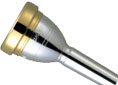 ■バストロンボーン用純金メッキ仕上げカスタムマウスピース。やや薄いリムを持ち、ペダルトーンでも豊かな響きを損なわない。カップ容量も充分で、低音域で息が良く入り大音量を得られる。