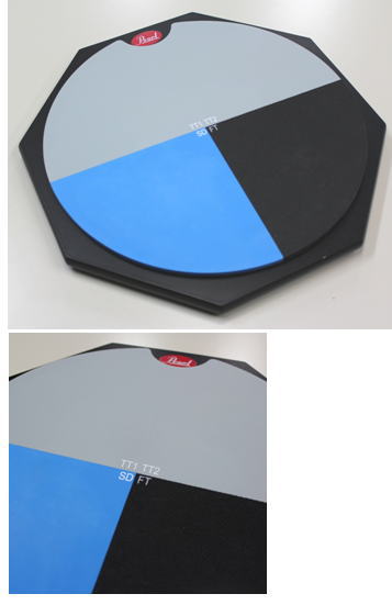 硬さの違う3タイプのラバー&ウレタンを表面に装備することで、スティックのバウンス感をそれぞれ楽しめる。SD=スネアドラム、TT=タムタム、FT=フロアタムとして、ドラムセットをイメージした、コンビネーションのトレーニングが可能。当然、TTをシンバルに見立てたトレーニングもOK