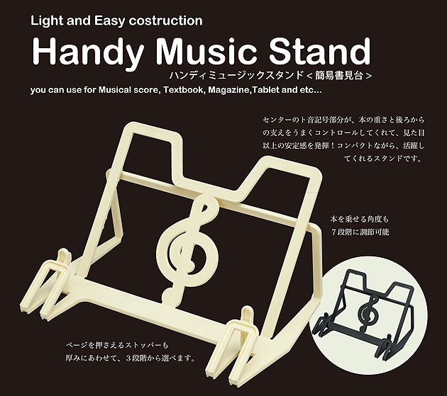 センターのト音記号部分が、本の重さと後ろからの支えをうまくコントロールしてくれて、見た目以上の安定感を発揮!コンパクトながら、活躍してくれるスタンドです。