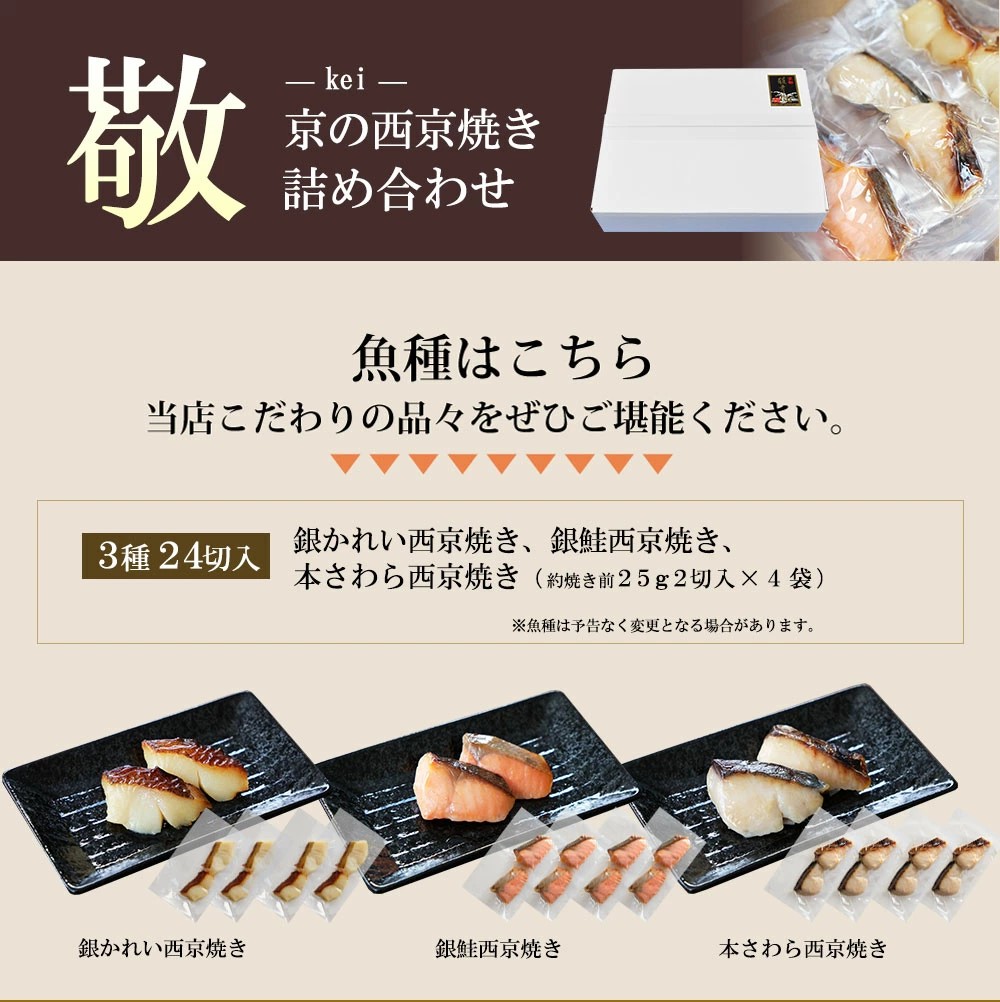 | 名称 | (敬)京の西京焼 3種 詰め合わせ (24切) |