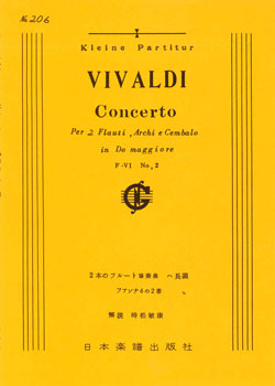 楽譜 ヴィヴァルディ/2つのフルートのための協奏曲 F.VI-2(ポケット・スコア 206)