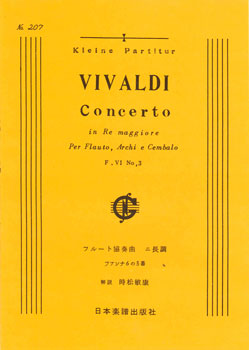 楽譜 ヴィヴァルディ/フルート協奏曲 ニ長調 F.VI-3(ポケット・スコア 207)