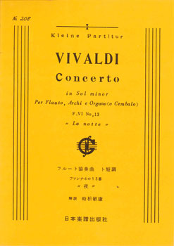 楽譜 ヴィヴァルディ/フルート協奏曲 ト短調「夜」F.VI-13(ポケット・スコア 208)