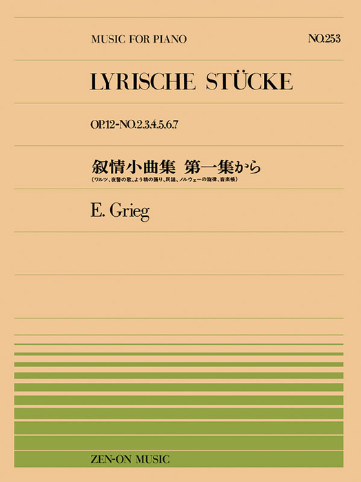 楽譜 全音ピアノピース253 グリーグ/叙情小曲集 第一集から(OP.12-No.2.3.4.5.6.7)(911253/難易度:B)