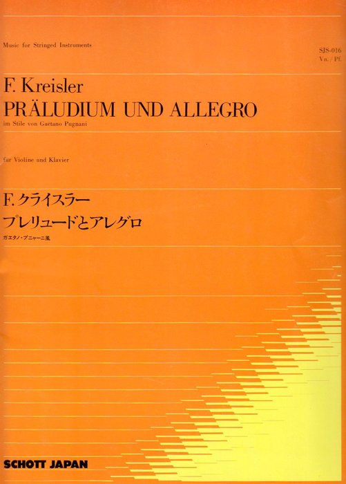 楽譜 クライスラー/プレリュードとアレグロ(SJS-016/ヴァイオリンとピアノ/ガエタノ・プニャーニ風)