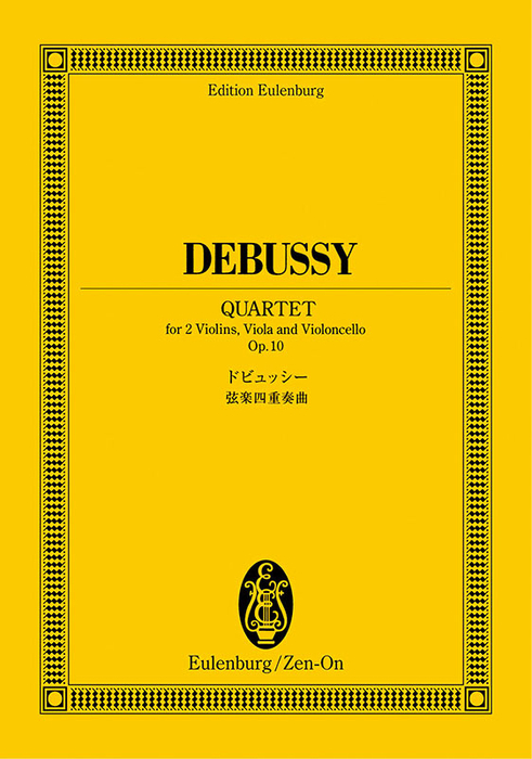 こちらはオイレンブルク・スコアです。商品のサイズは、四六変型判 188×132mmです。19世紀末、ドビュッシーが独自のハーモニーによる印象派の作風を現した初期の作品のひとつで、この弦楽四重奏曲はフランスの作曲家による同ジャンルの作品として第一にあげられるべきものです。このオイレンブルクのスコアは、イレーヌ・アルベルティの校訂によって、新しく浄書されたスコアです。解説はロジャーフィスケが担当しています(翻訳:遠山菜穂美)。