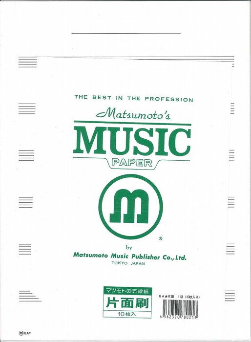 パート五線紙6A★(片面) 【1袋(10枚)】(2つ折り/2ページ縦315mm×横465mm(232.5mm))