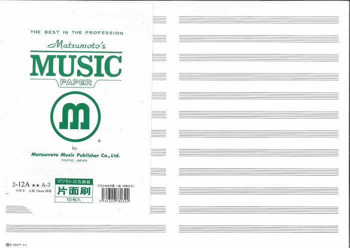 パート五線紙2-12A★★(片面) 【1袋(10枚)】(縦297×横420サイズ)