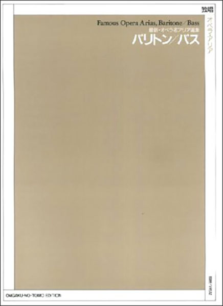 関連words:音楽之友社/もう飛ぶまいぞ、このちょうちょう/カタログの歌(奥さん、これが恋人のカタログ)/ドン・ジョヴァンニのセレナード(窓辺においで)/わたしは鳥刺/この神聖な殿堂には/恋人か女房か/わたしは町のなんでも屋/陰口はそよ風のように/悪魔め、鬼め/きみがほほえみ/プロヴァンスの海と陸/ああ、パレルモ/おまえこそ心を汚すもの/ひとり寂しく眠ろう/イアーゴの信条/夕星の歌(優しい夕星よ)/メフィストのセレナード(眠ったふりをせずに)/闘牛士の歌/プロローグ(ごめんください、皆さま方)/古い外套よ、聞いてくれ/曲目解説・訳