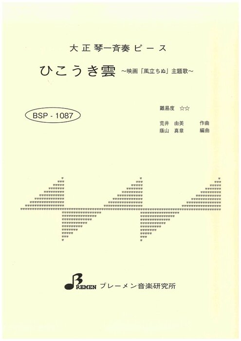 楽譜 BSP-1087 ひこうき雲(大正琴・一斉奏ピース/中級/演奏時間:3:34)